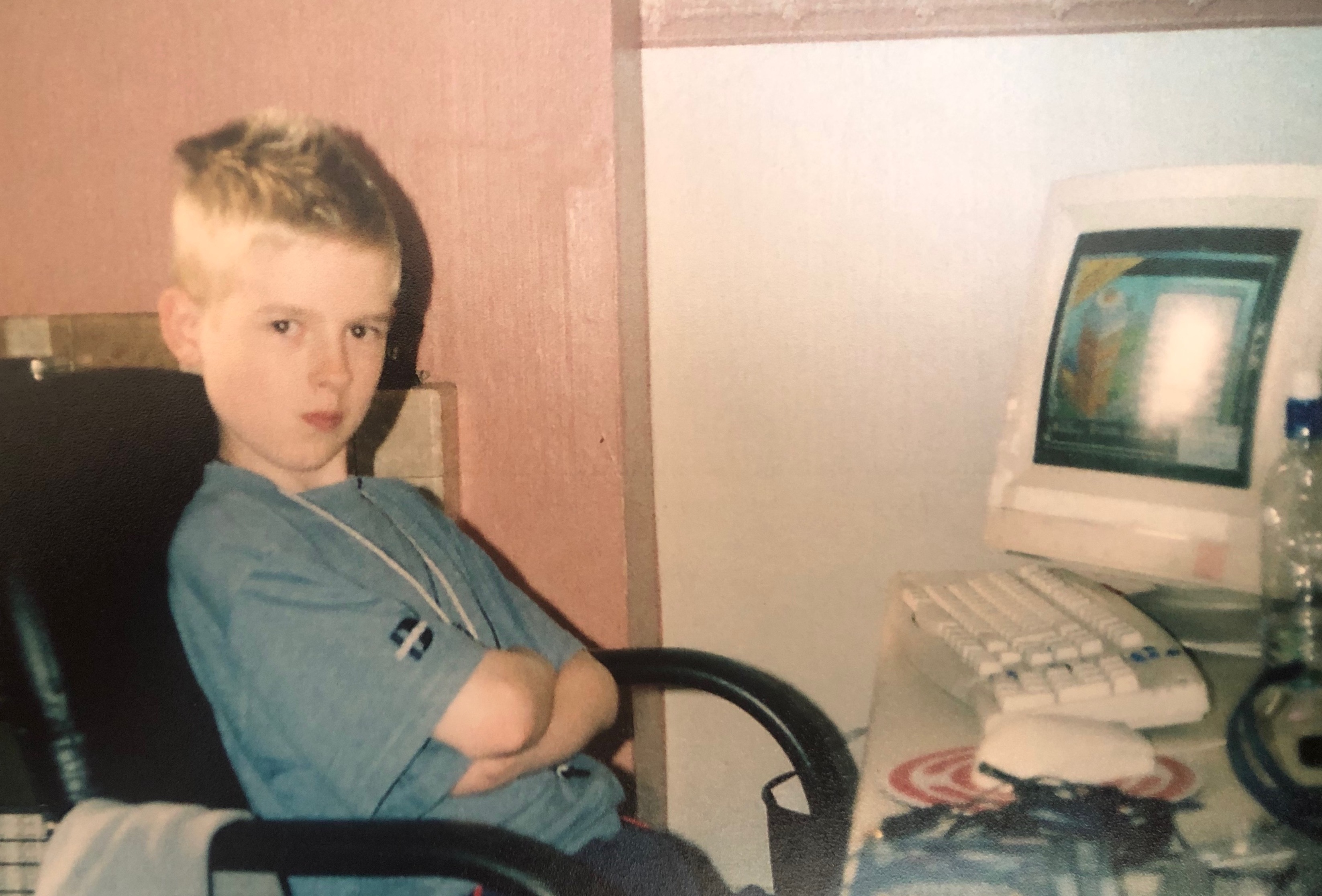 His office had 3 computers set up, all with giant CRT monitors and "classic" off-white computer cases. At the time, that was pretty abnormal!